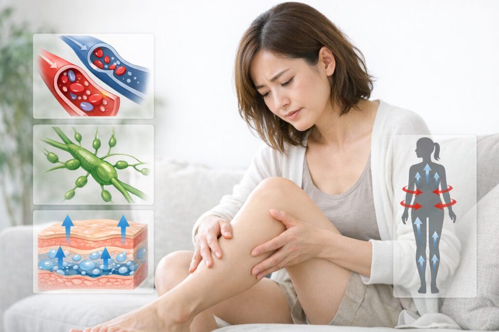 朝は大丈夫だったのに、気づけば足がむくんでいたり、だるさが抜けなかったり…。